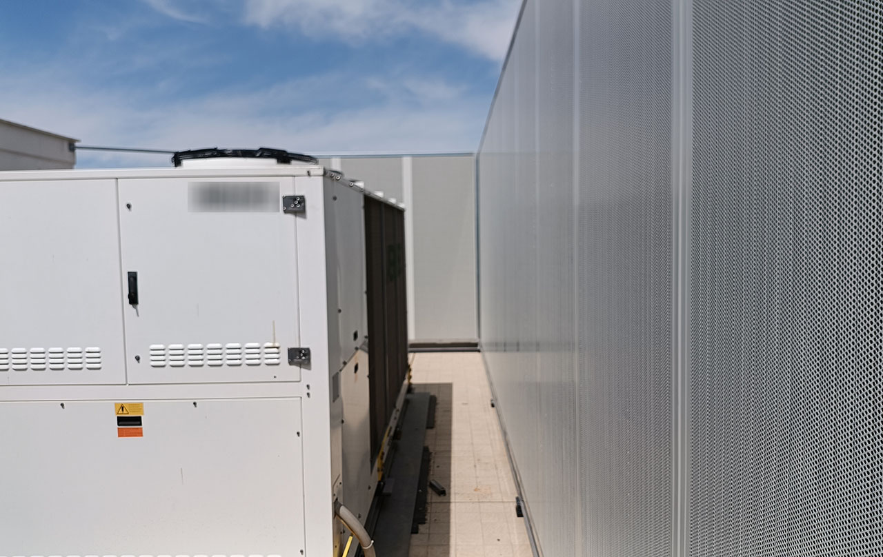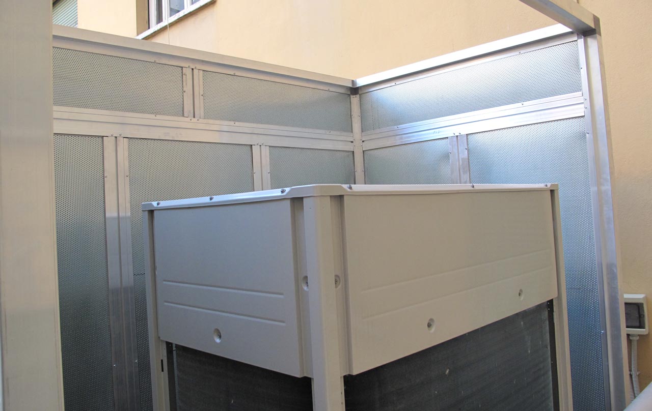 Progettazione della barriera fonoisolante e fonoassorbente per la schermatura delle pompe di calore per il riscaldamento ed il condizionamento dell'aria.